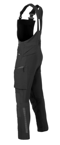 Amerikaanse overall op basis van duurzaam materiaal. Zwarte designreflectie, 4-way stretch en voorgevormde pijpen.