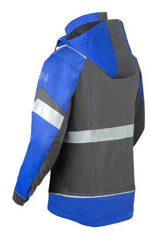 verdekte ritssluiting met verdekte drukknopen, 2 voorzakken met klep, 2 ingezette borstzakken waarvan rechter borstzak voorzien is van D-ring voor badgehouder, inritsbare voering is los verkrijgbaar, afneembare capuchon met koord, vluchtmaskerlus, manchetten met klittenband, verlengd rugpand, reflectieband