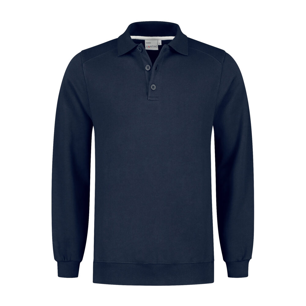 Pull polo, 50% coton / 50% polyester, 320 g/m², French terry avec intérieur brossé, coupe moderne avec col polo, patte de boutonnage à 3 boutons, design demi-lune et tricot côtelé 2x2 épais au niveau du col, des empiècements latéraux, des poignets et de la taille.
