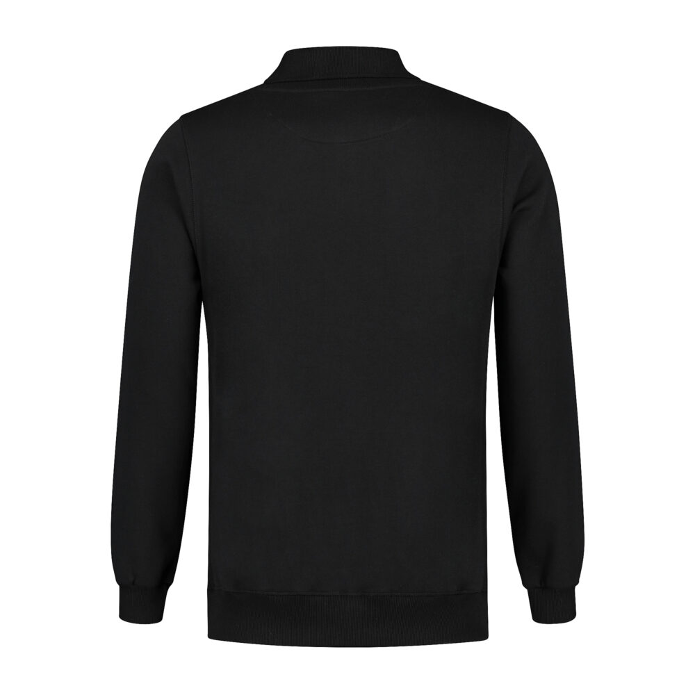 Polosweater, 50% katoen / 50% polyester, 320 gr/m², french terry met geruwde binnenzijde, modern fit met polokraag, 3-knoopsluiting, halve maan en zware 2x2 rib in kraag, zijpanelen, manchetten en tailleband.