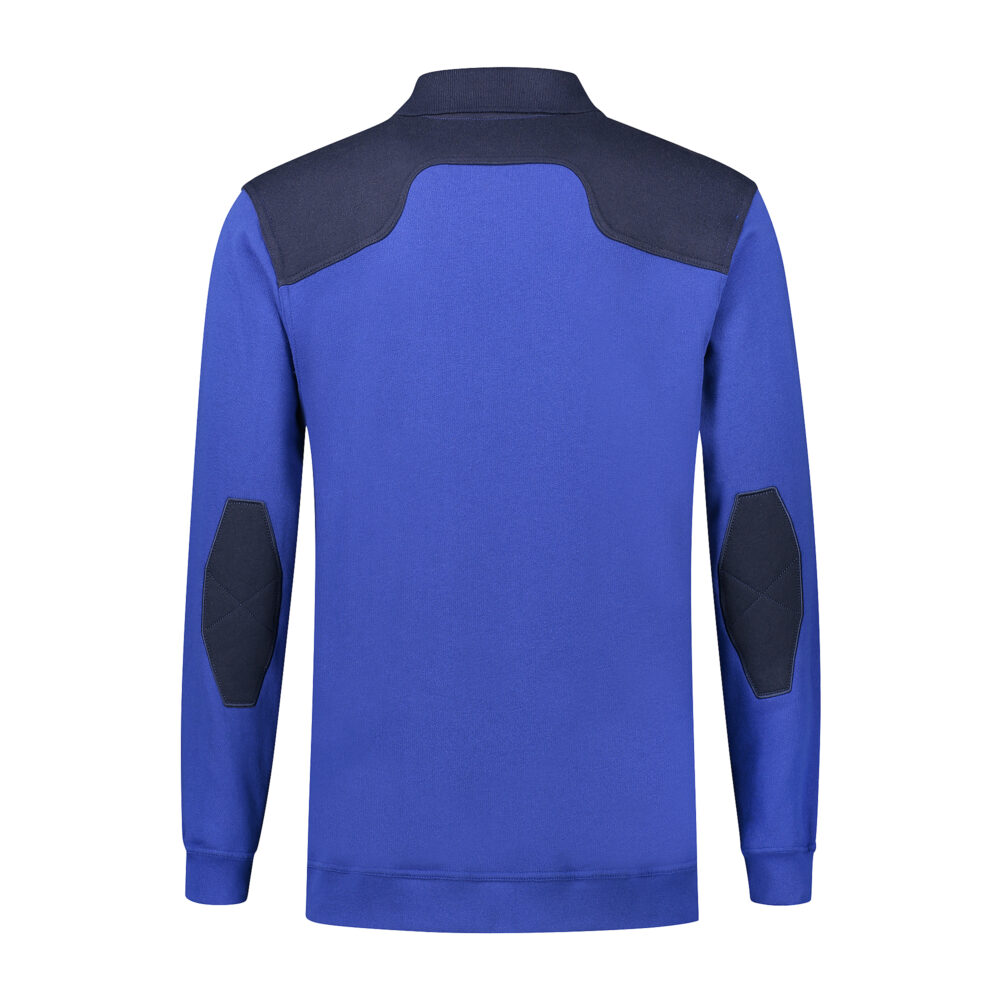 Polosweater, 50% katoen / 50% polyester, 280 gr/m², french terry met geruwde binnenzijde, regular fit met polokraag, 3-knoopsluiting, mouw met ribmanchet, tailleband in 1x1 rib en kraag, schouderstuk in contrast kleur.