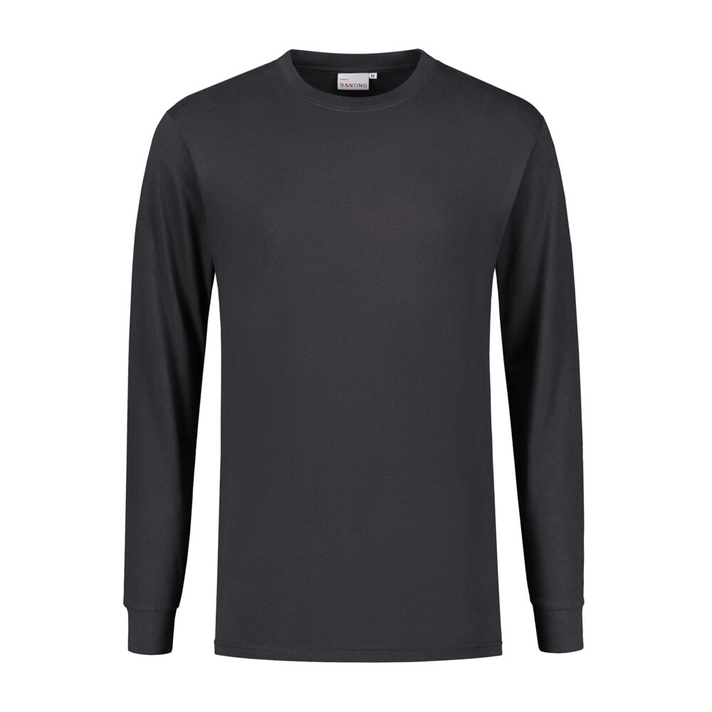 T-shirt à manches longues, 100 % coton, 190 g/m², jersey simple, coupe classique, col ras du cou, bord-côte, sans coutures latérales et poignets côtelés. (Gris foncé 65 % polyester / 35 % coton.)