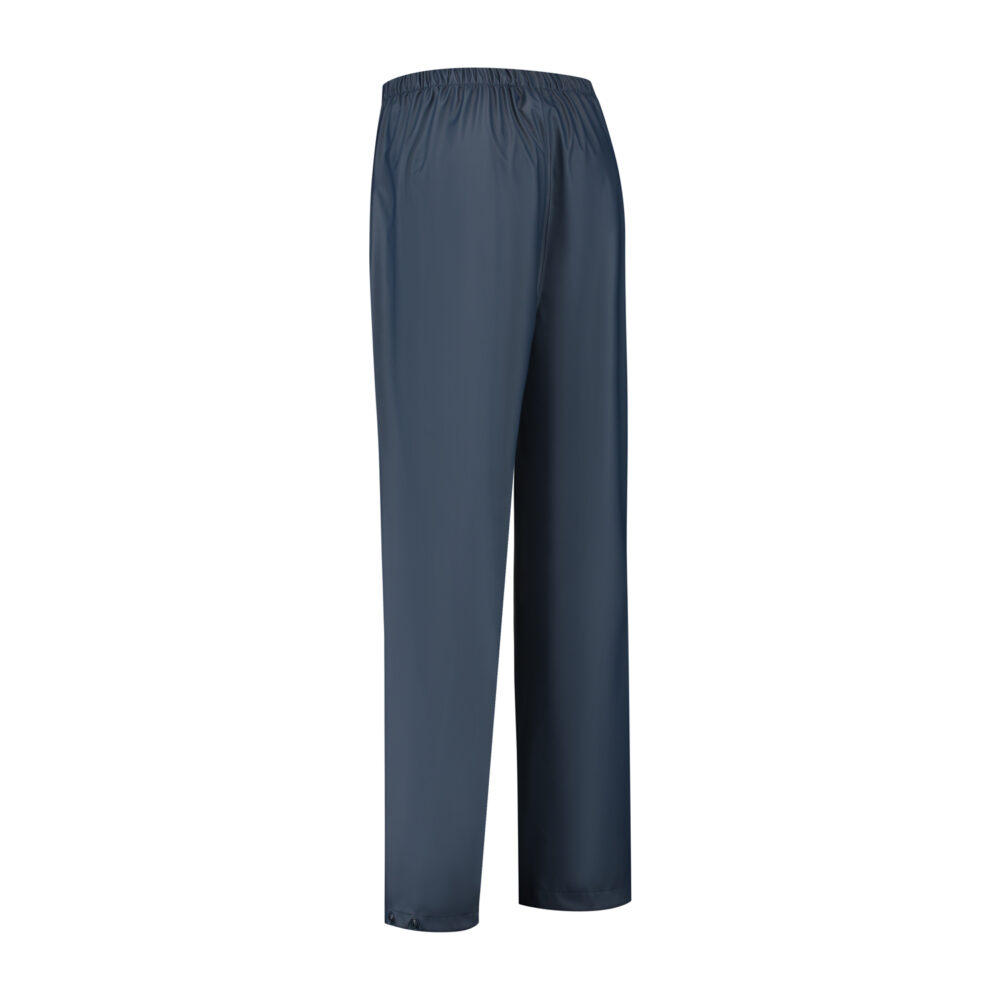 Regenbroek PU, elastiek in taille, logo op linkerbeen, steldrukkers onderkant pijp