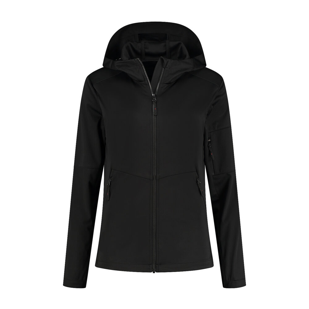 Softshell jacket, 100% polyester, 180 gr/m2, 3-laags lichtgewicht softshell jacket met verstelbare capuchon, zak op linkermouw in naad verwerkt, steekzakken met rits, YKK ritssluiting, onderzijde verstelbaar met koord en koordstopper. Alle naden aan de binnenkant zijn afgewerkt met mesh band.