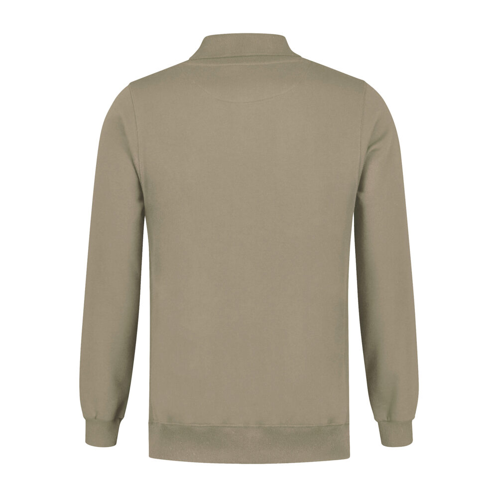 Polosweater, 50% katoen / 50% polyester, 320 gr/m², french terry met geruwde binnenzijde, modern fit met polokraag, 3-knoopsluiting, halve maan en zware 2x2 rib in kraag, zijpanelen, manchetten en tailleband.
