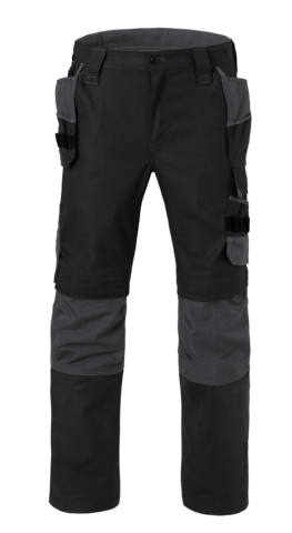 Werkbroek polyester/katoen, 65% polyester / 35% katoen, 260 gram/m2, 2 zijzakken, 2 loshangende voorzakken met Oxford versteviging welke weg te vouwen zijn in de broekzak, 2 afsluitbare achterzakken, ritssluiting, riemlussen, dijbeenzak met klittenbandsluiting, telefoonzak, duimstokzak, rolmaatzak, Oxford kniezakken.