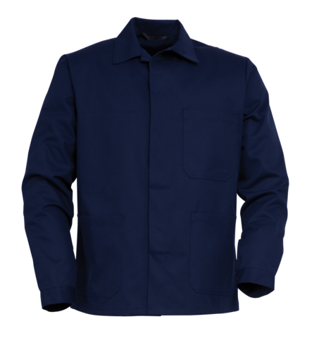 Werkjasje polyester/katoen, 65% polyester / 35% katoen, 260 gram/m2, drukknooopsluiting, 2 zijzakken en borstzak